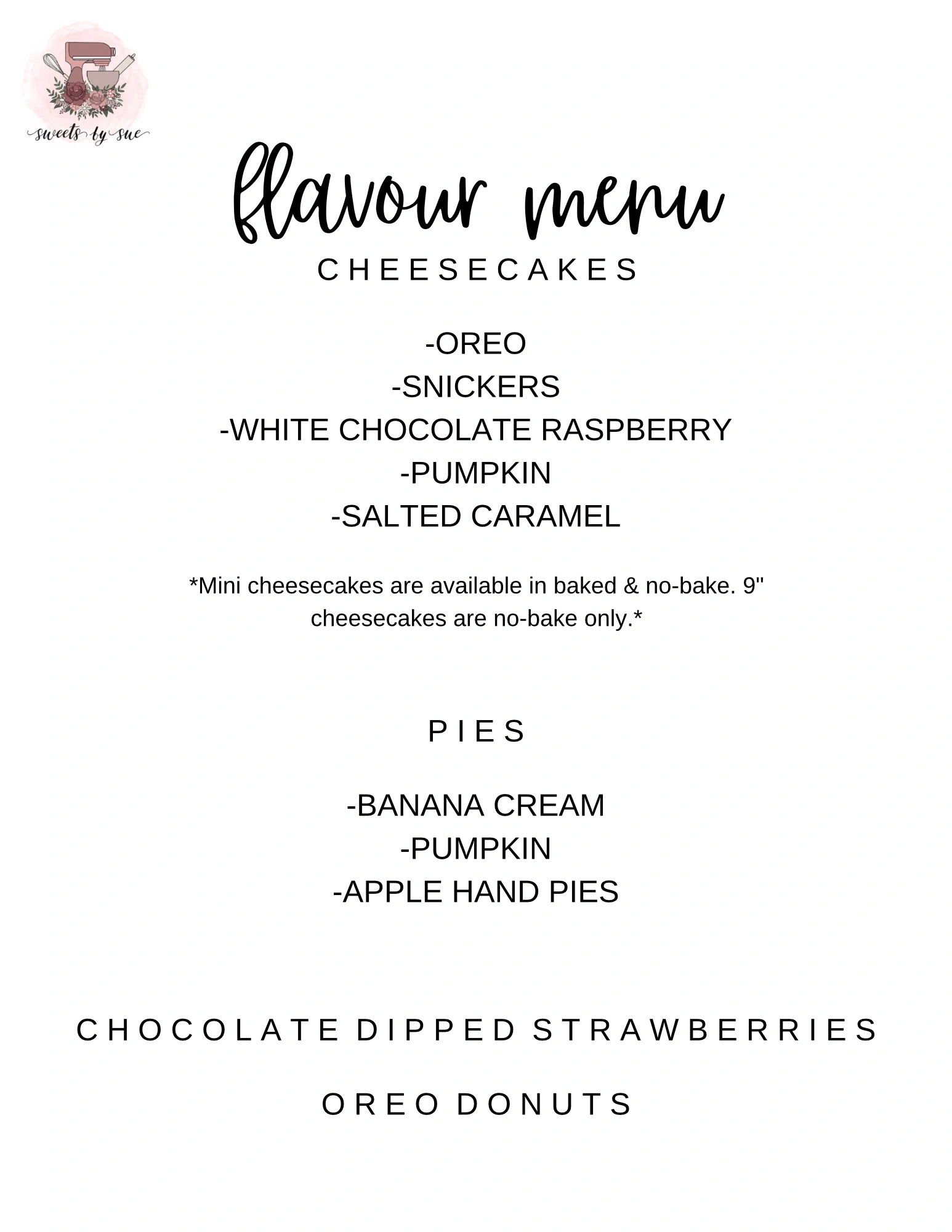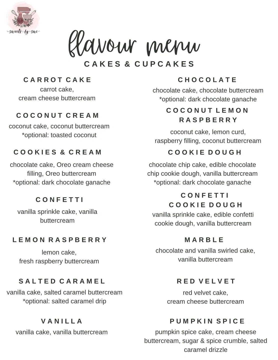 Current Flavour Menu | Sweets by Sue - Lethbridge Bakery